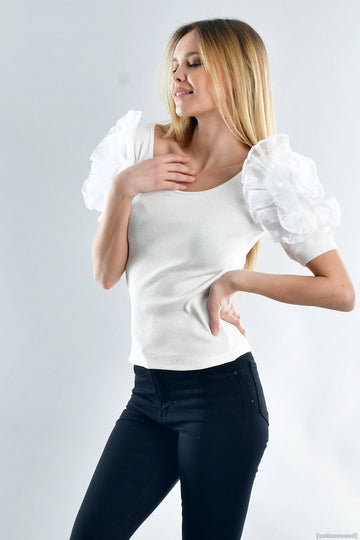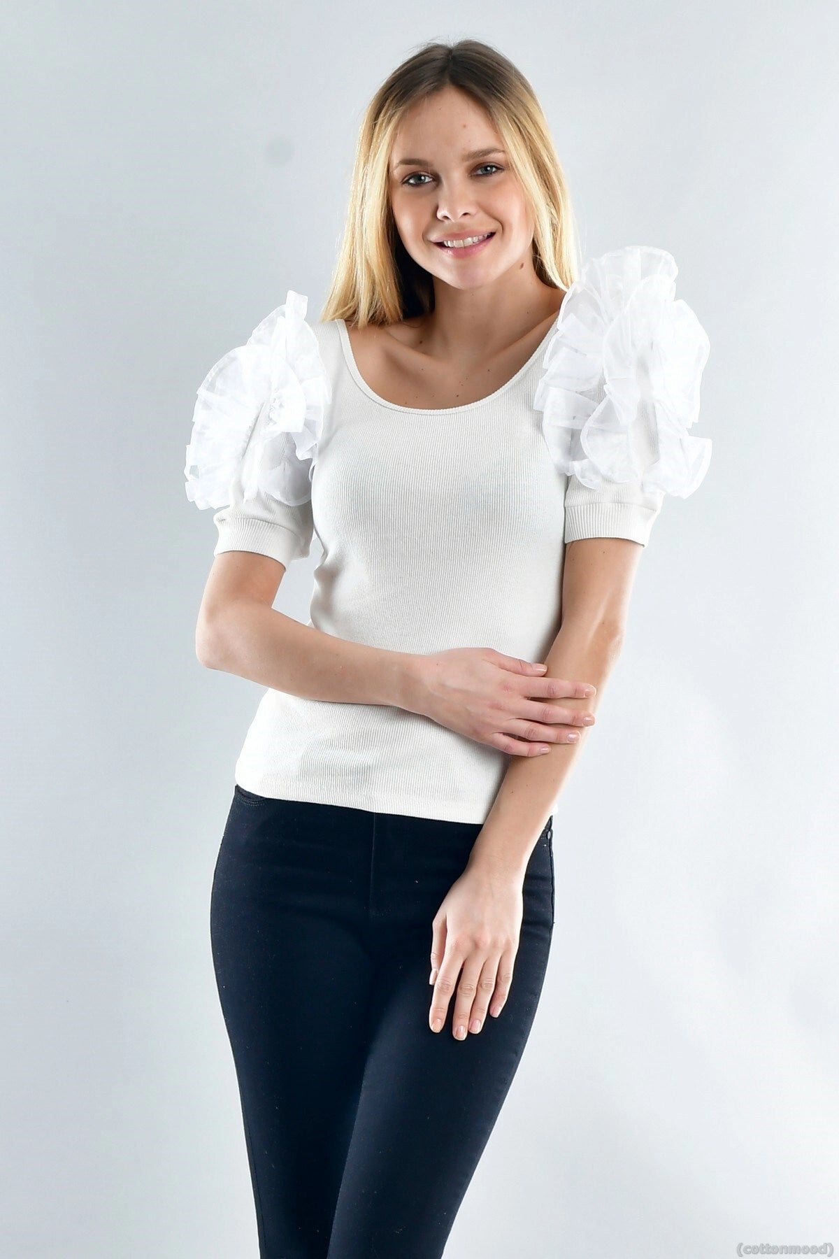 Ecru Kashkorse Princess Shoulder Tulle Detailed Blouse