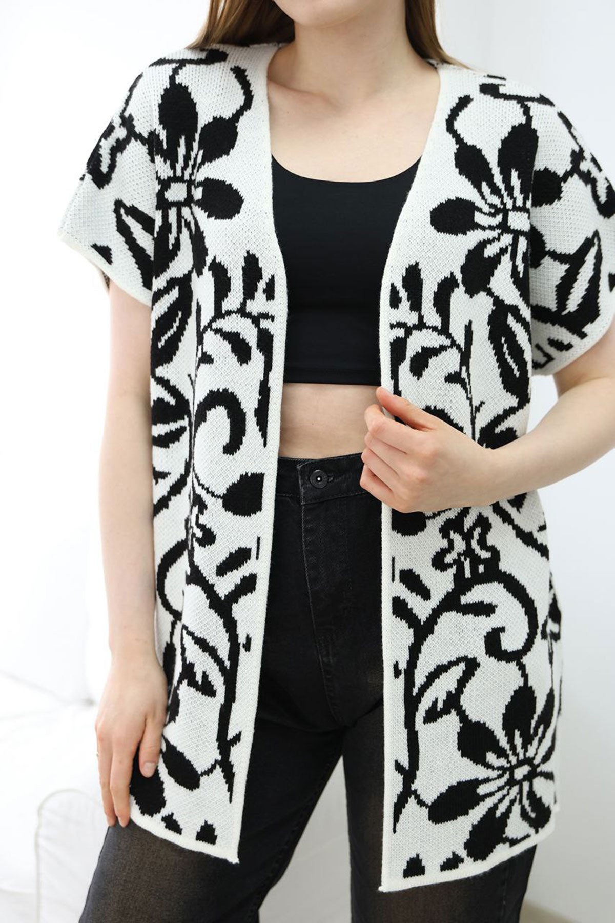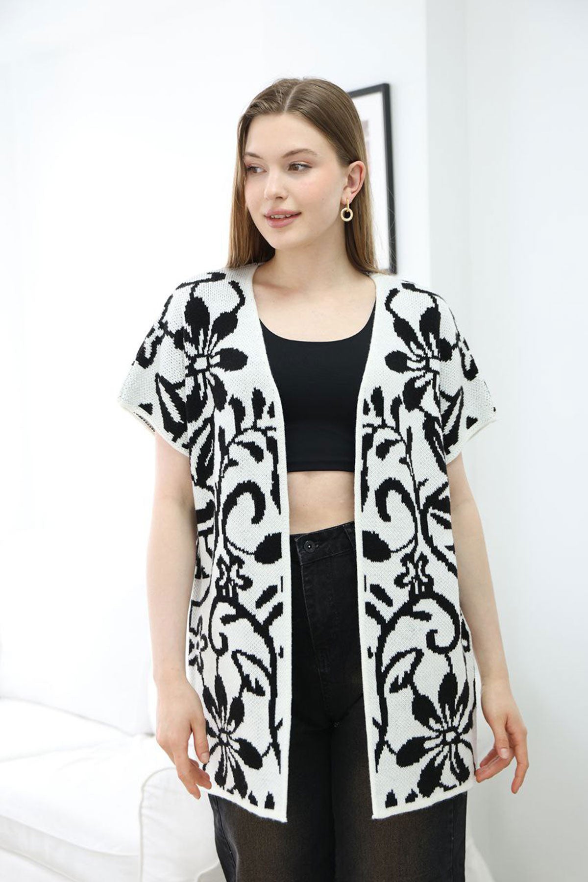 Ecru Half Sleeve Patterned Knit Cardigan BCES-252007 - Fürstenfeldbruck