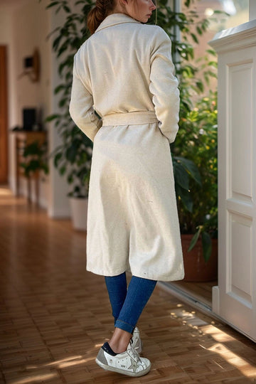 Ecru Jacket Collar Belted Pocketed Coat BCBSK-25700-3310 - Lawton