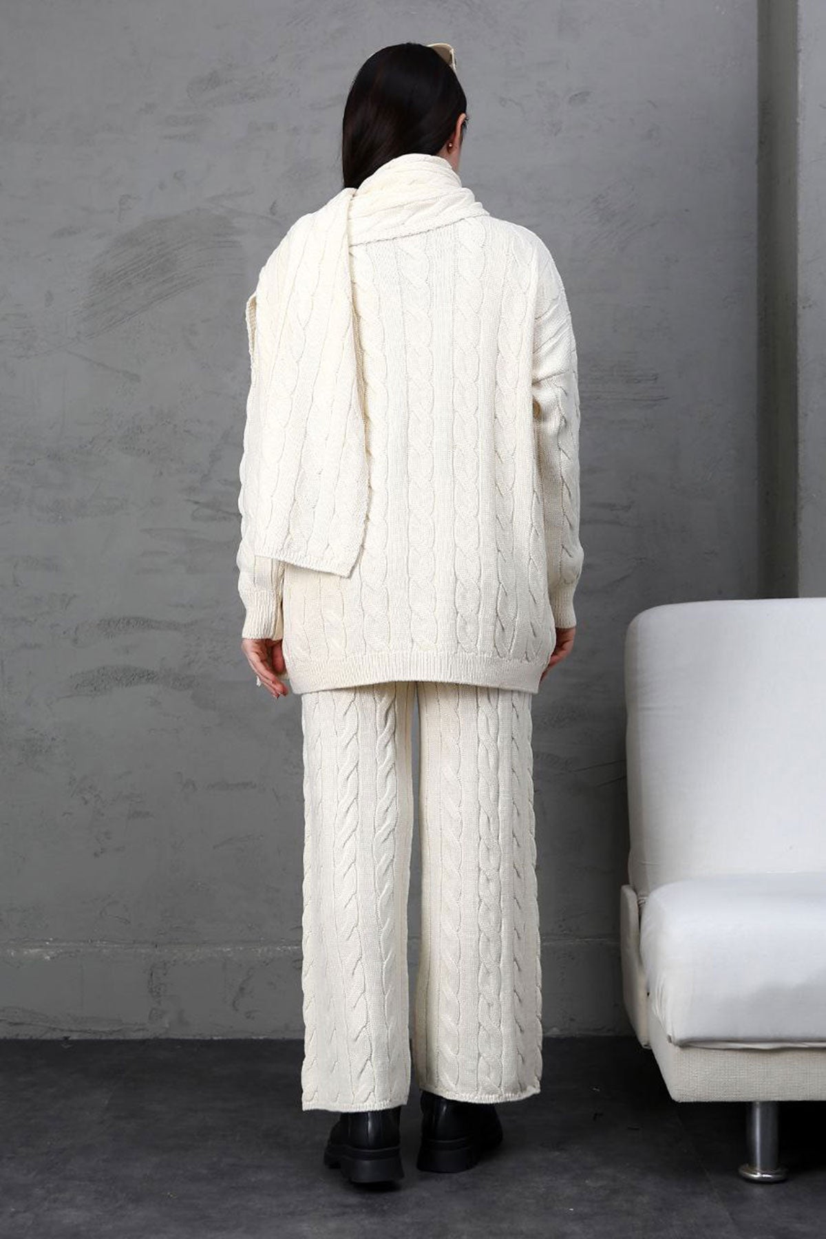 Ecru Knitted Sweater Cardigan and Pants 3 Piece Knit Set BCES-252031 - Meoqui