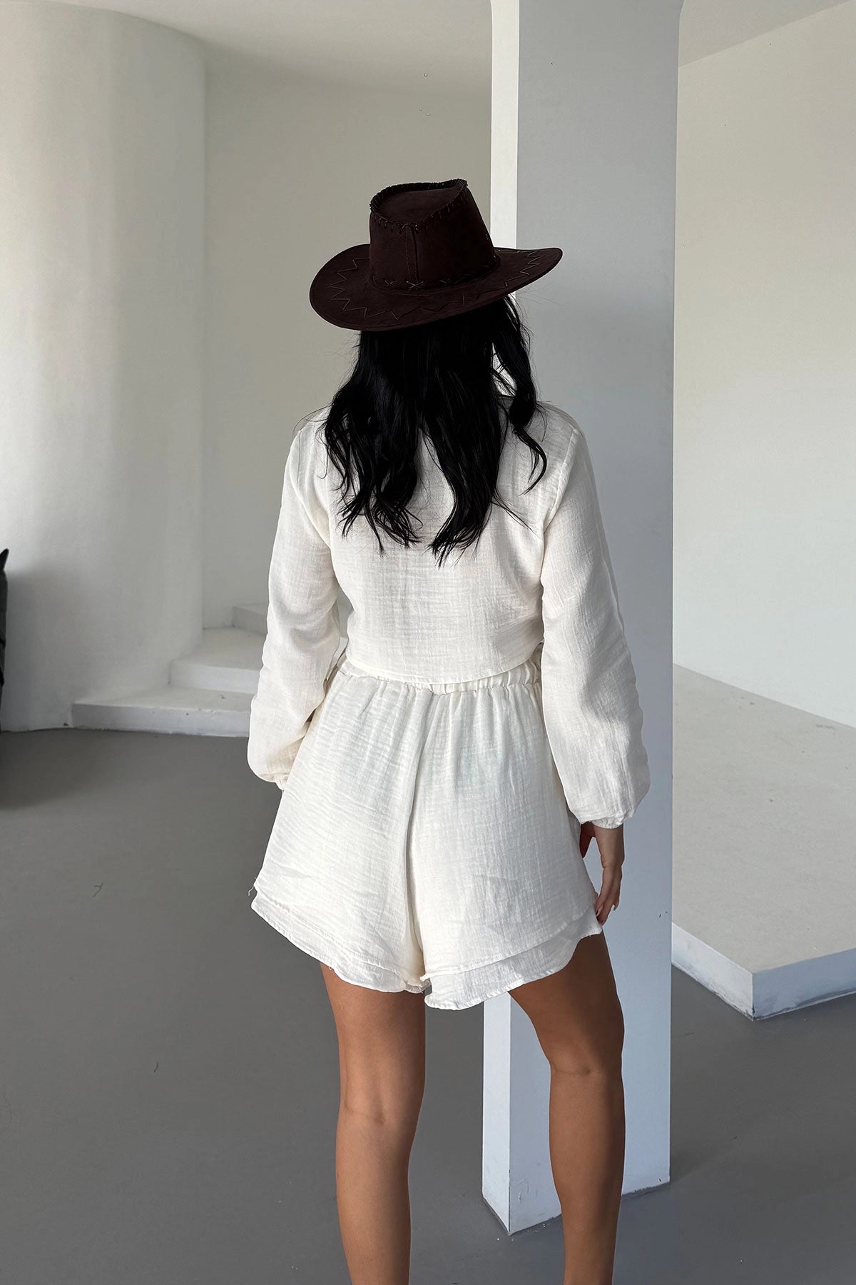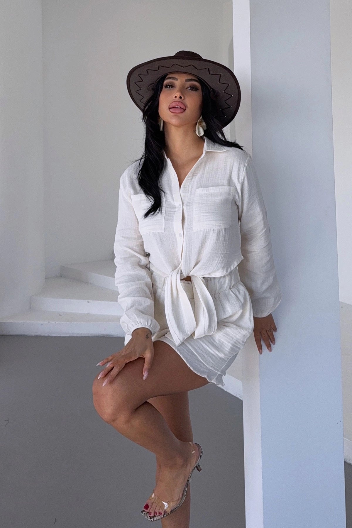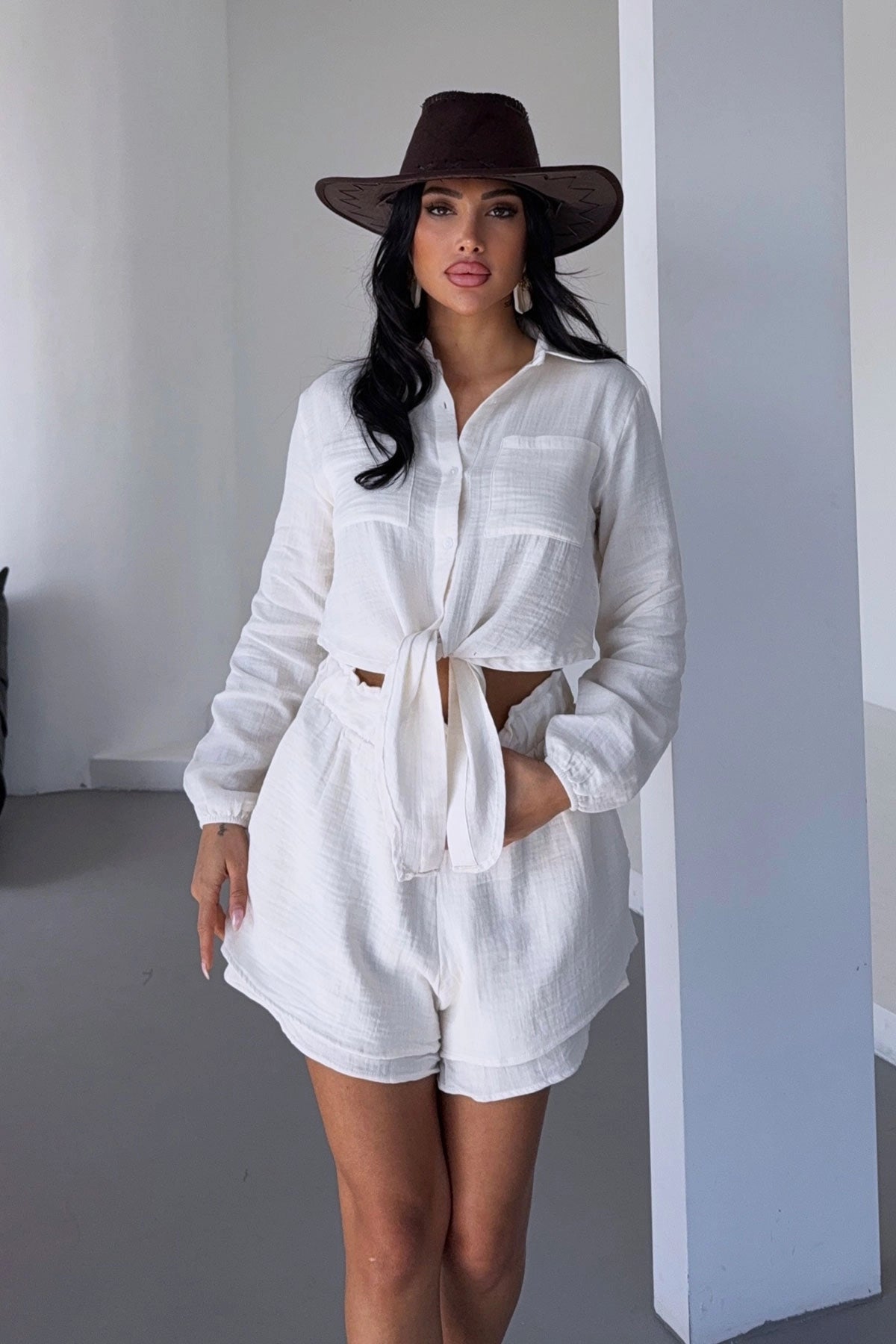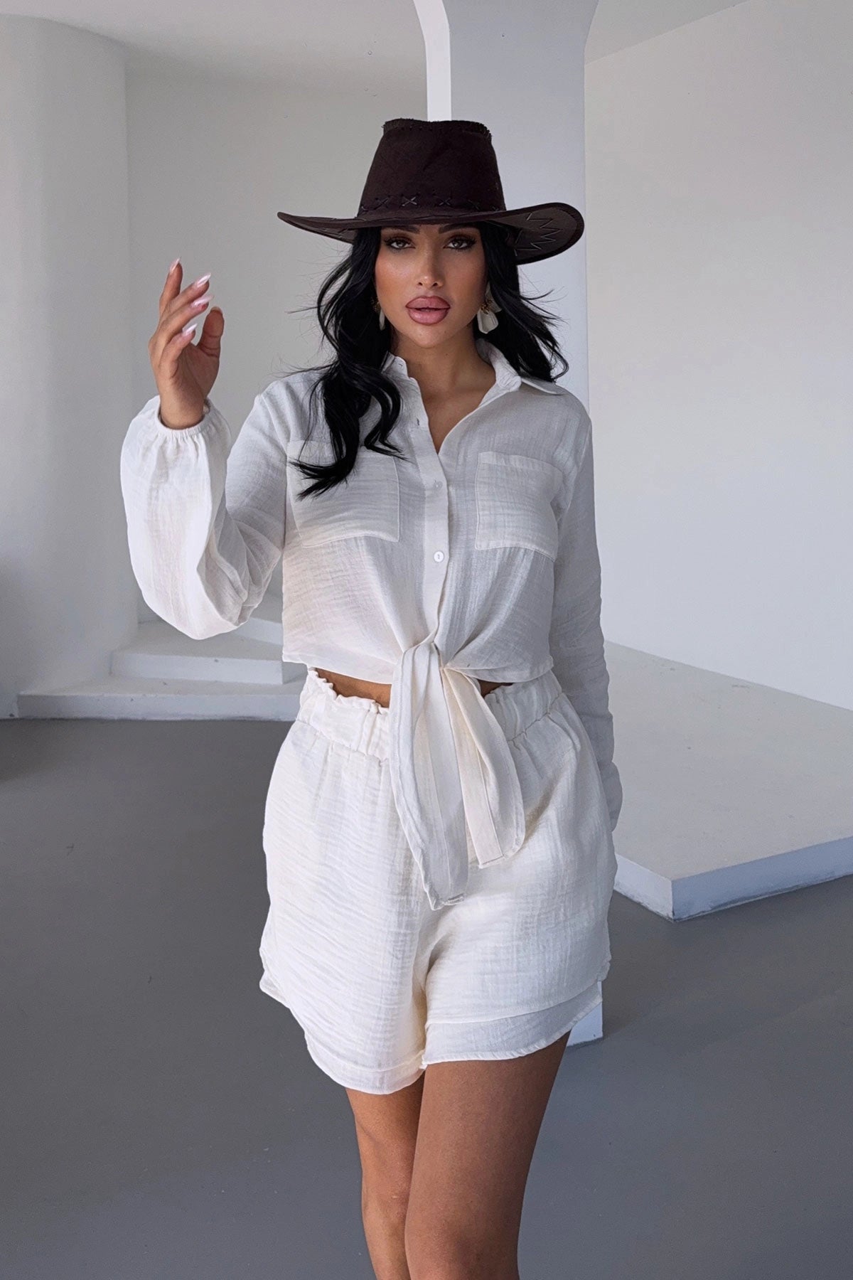 Ecru Muslin Linen Shorts Set BCBT-251001 - Lombard