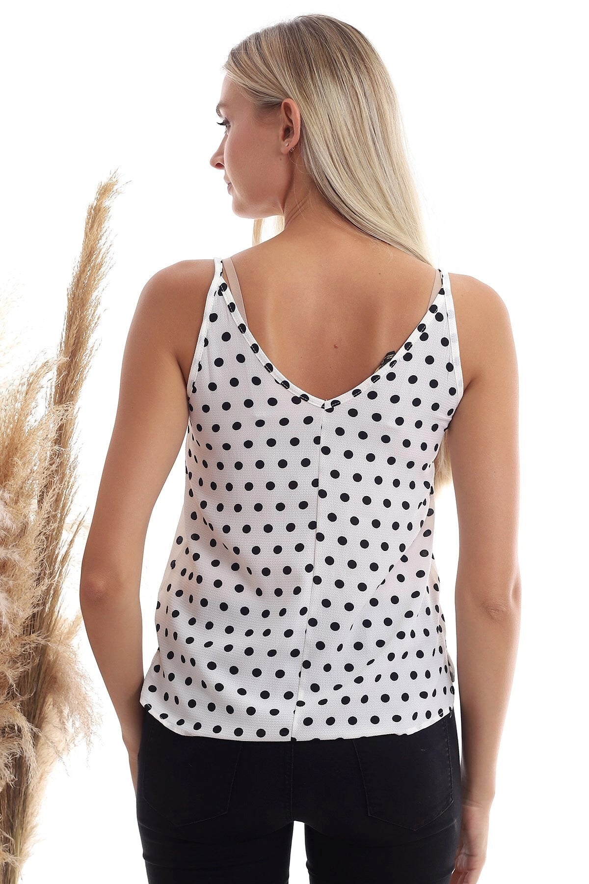 Ecru Polka Dot Patterned String Strap Blouse CO-2520333453 - Wilrijk
