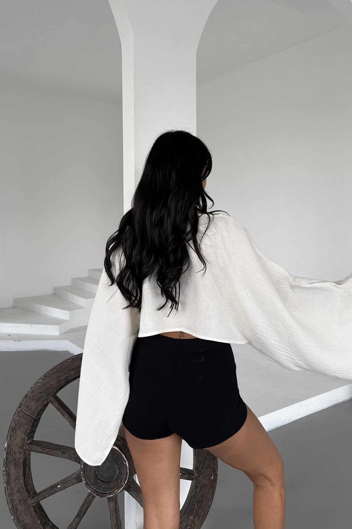 Ecru Wide Neck Batwing Sleeve Muslin Fabric Linen Blouse BCBT-251003 - Burleson