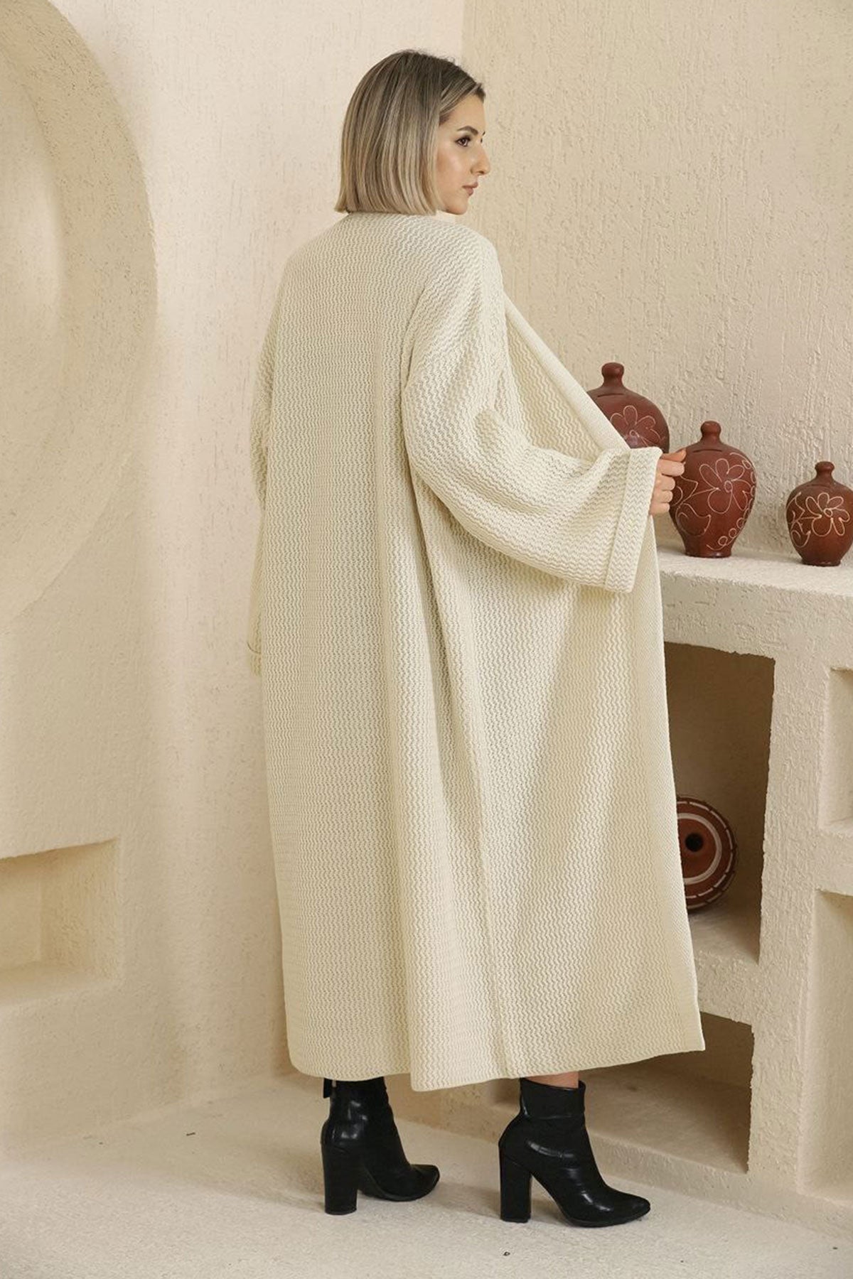 Ekru Double Sleeve Long Hijab Cardigan BCES-253000 - Leith