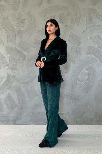 ELS Belted Jacket and Pants Velvet Suit - Emerald - Pioltello