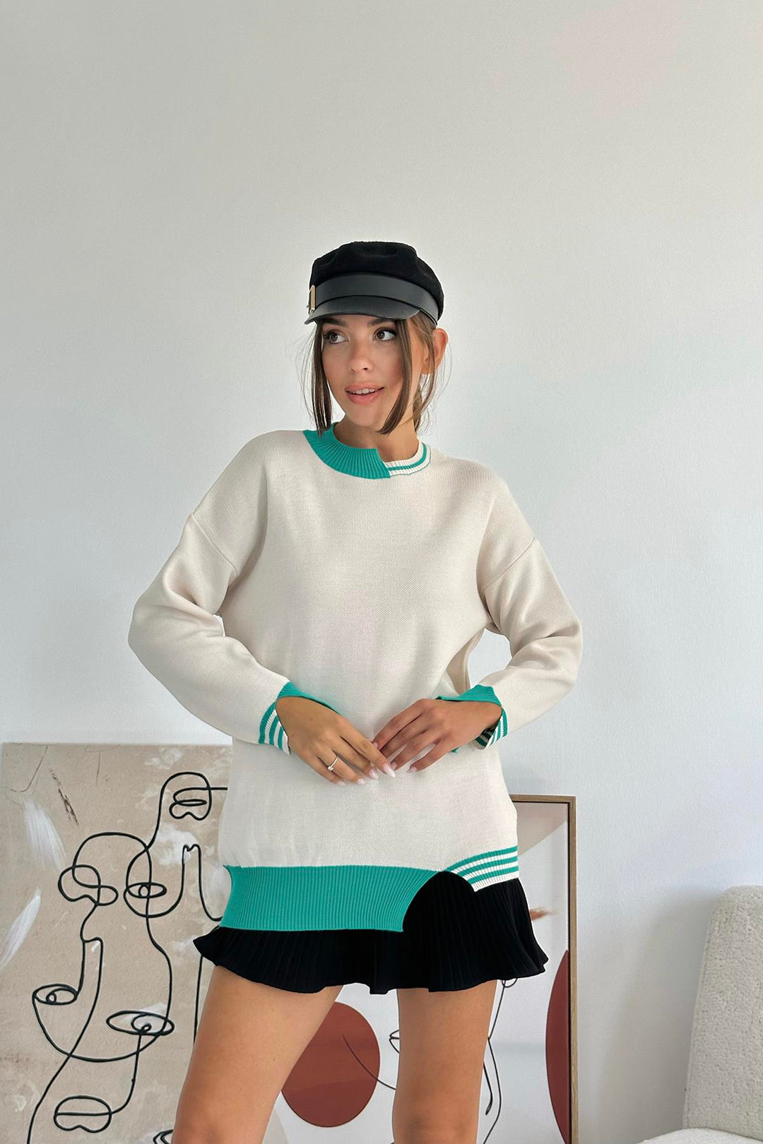 ELS Neck and Cuff Trimmed Knit Sweater - Green - Frankston
