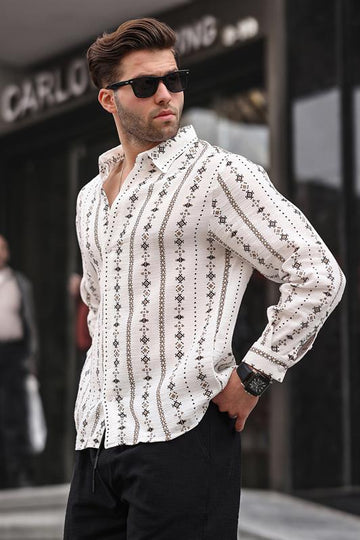 MDX Brown Patterned Long Sleeve Men's Shirt 6734 - Don Benito