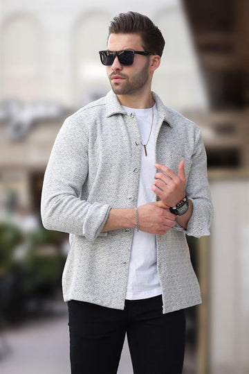 MDX Gray Patterned Single Pocket Men's Polar Shirt 6752 - Jelgava